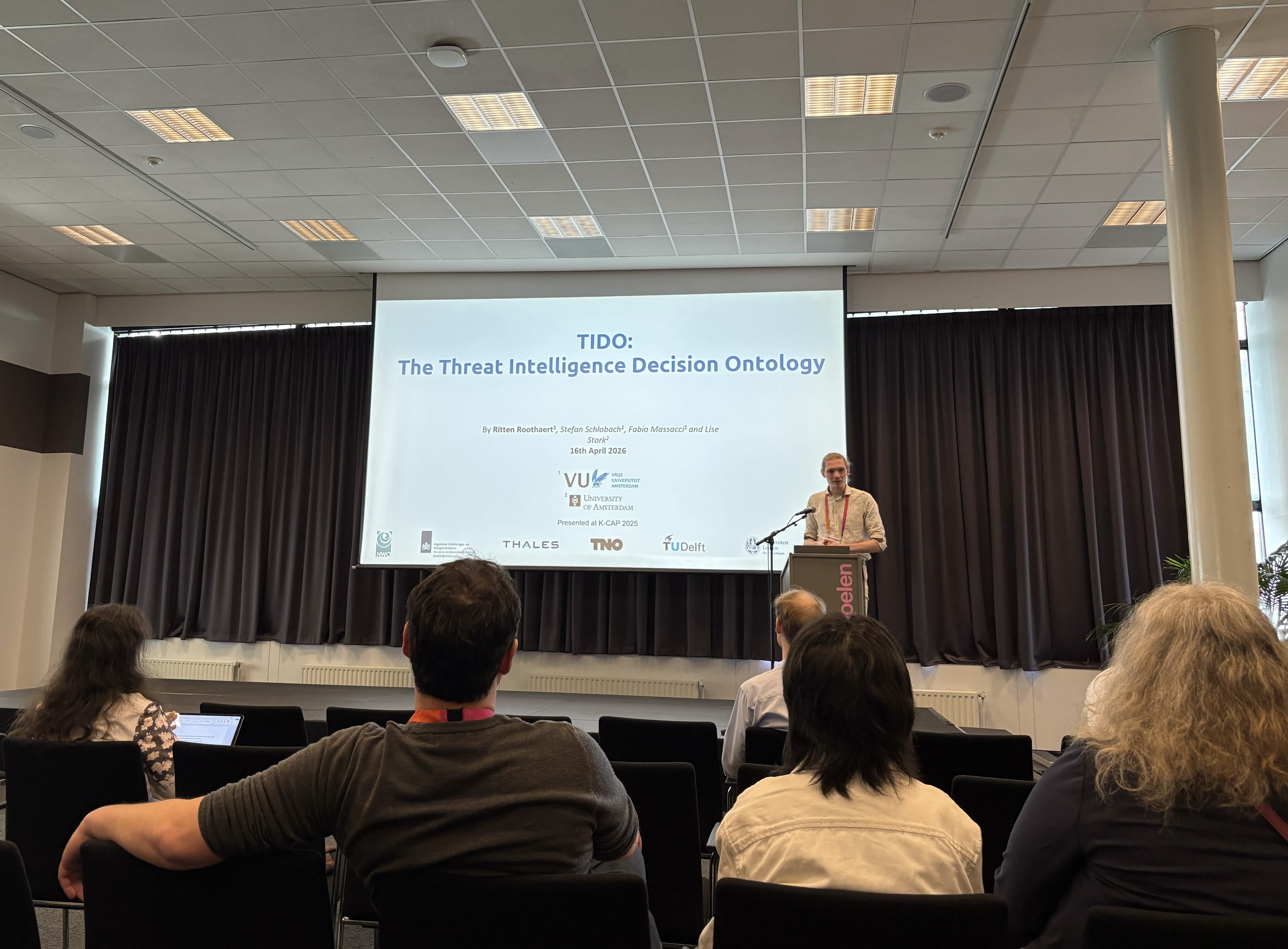 Ritten exposed his work on the TIDO ontology at the Ontologies and Knowledge Graphs track. He showed how context is crucial when interpreting information within the Threat Intelligence domain, and how the TIDO ontology is able to either support or satisfy the majority of the information requested by domain experts during a representative case analysis.